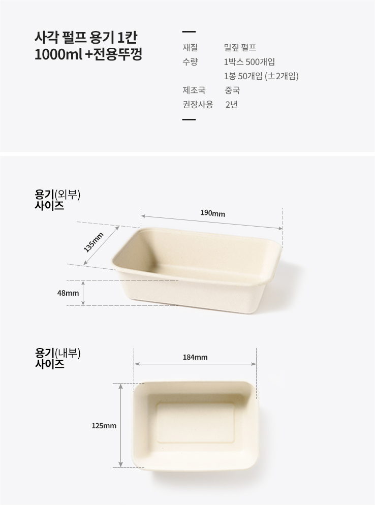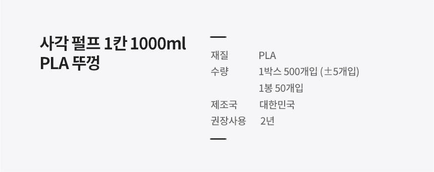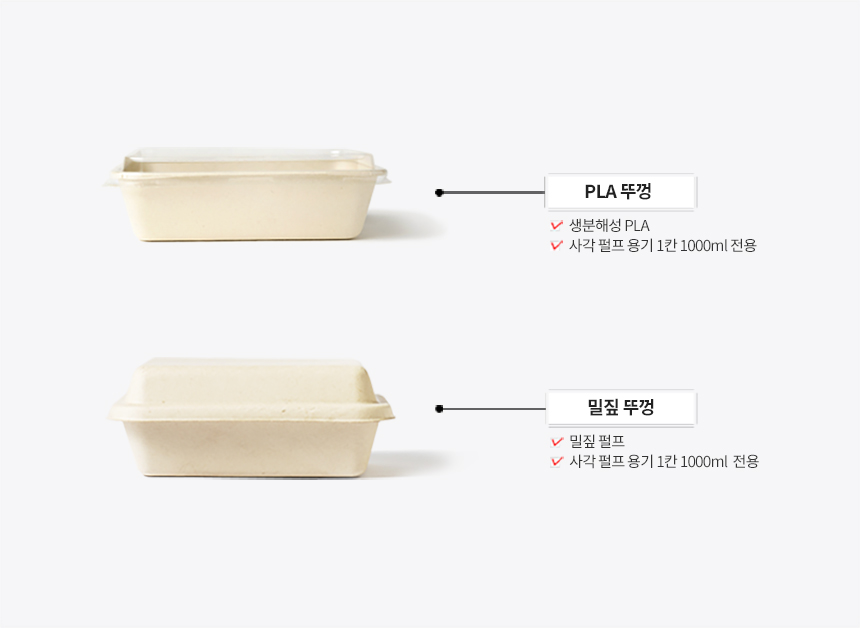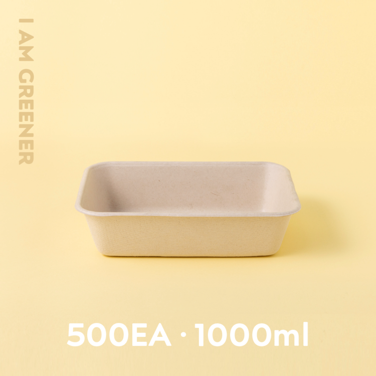 1000ml / 밀짚 펄프 / PLA뚜껑+용기 세트 / 일회용 1칸 도시락