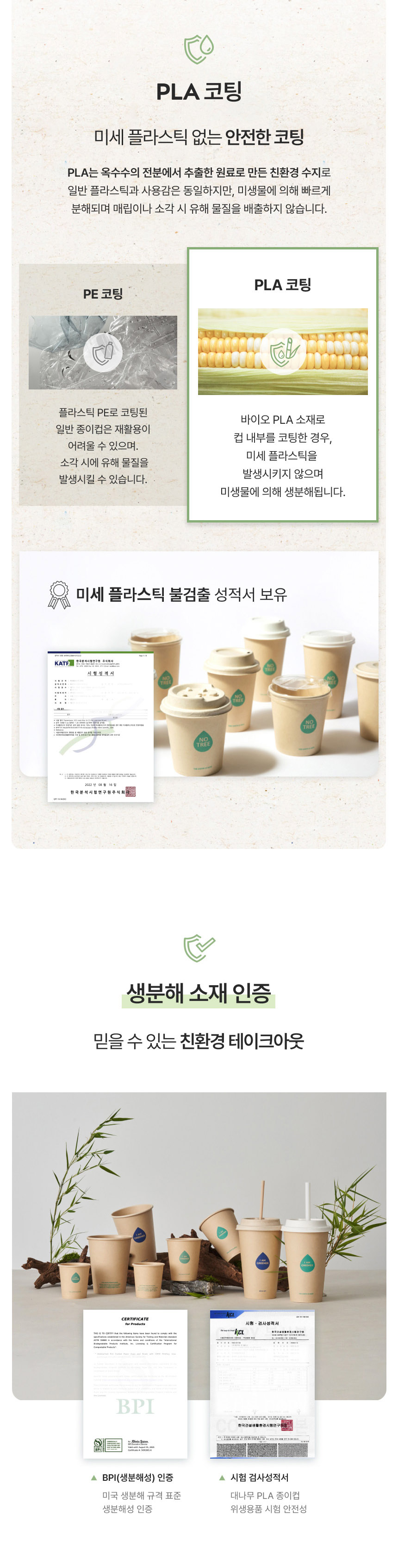 16oz / 90파이 / 대나무 종이컵 /  친환경 종이컵 / 100개 /PLA 핫컵리드 함께 구매가능/10,12,16 oz 뚜껑 사이즈 동일