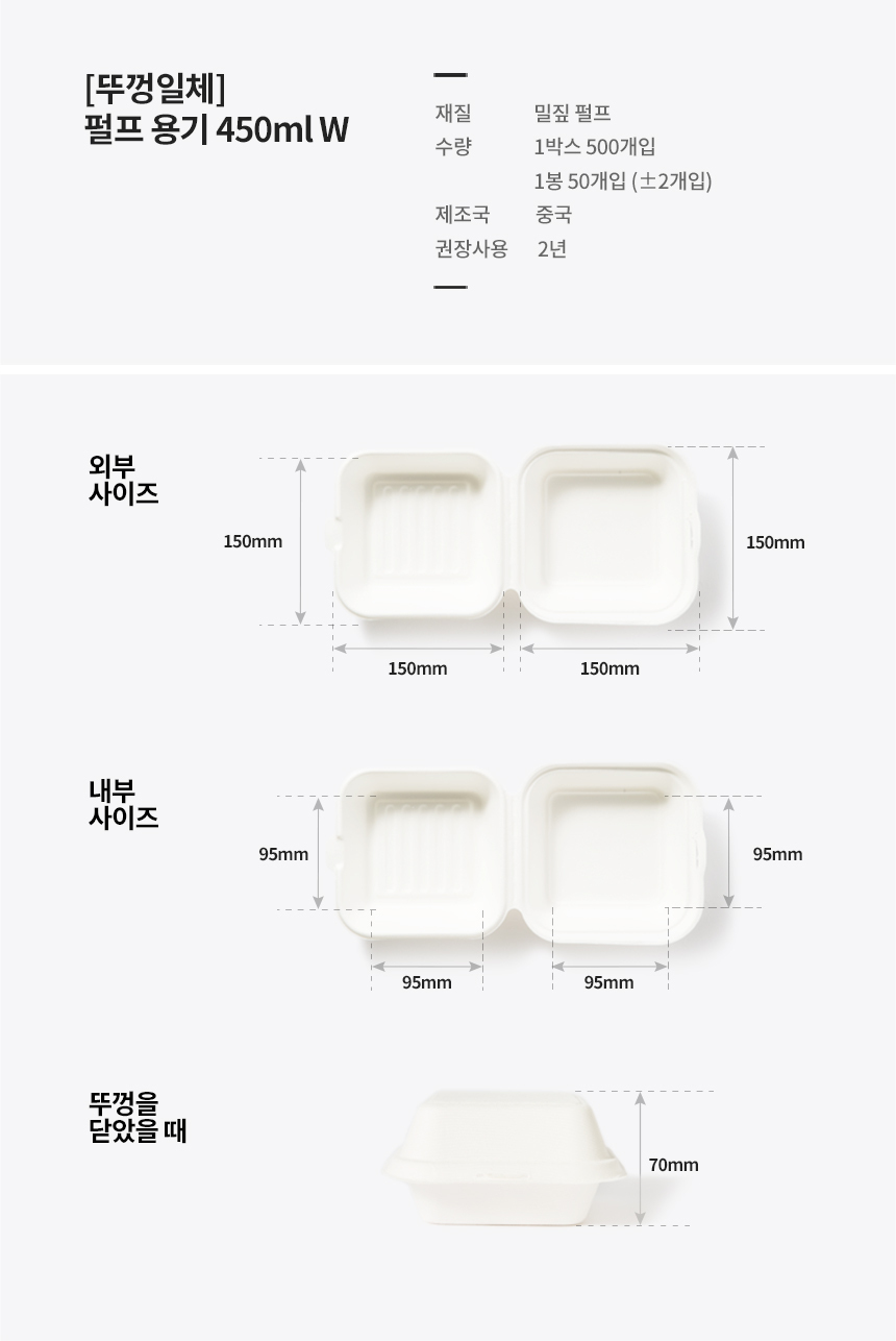 밀짚 햄버거 도시락 450ml 백색 뚜껑일체형 50개