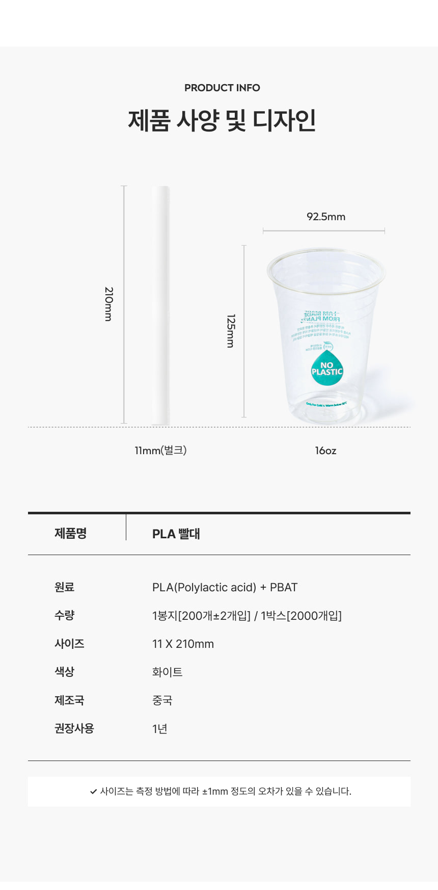 11x210mm / 버블티 / 벌크포장 / 아임낫플라스틱 / 옥수수PLA 스트로우 / 일회용 / 친환경 빨대