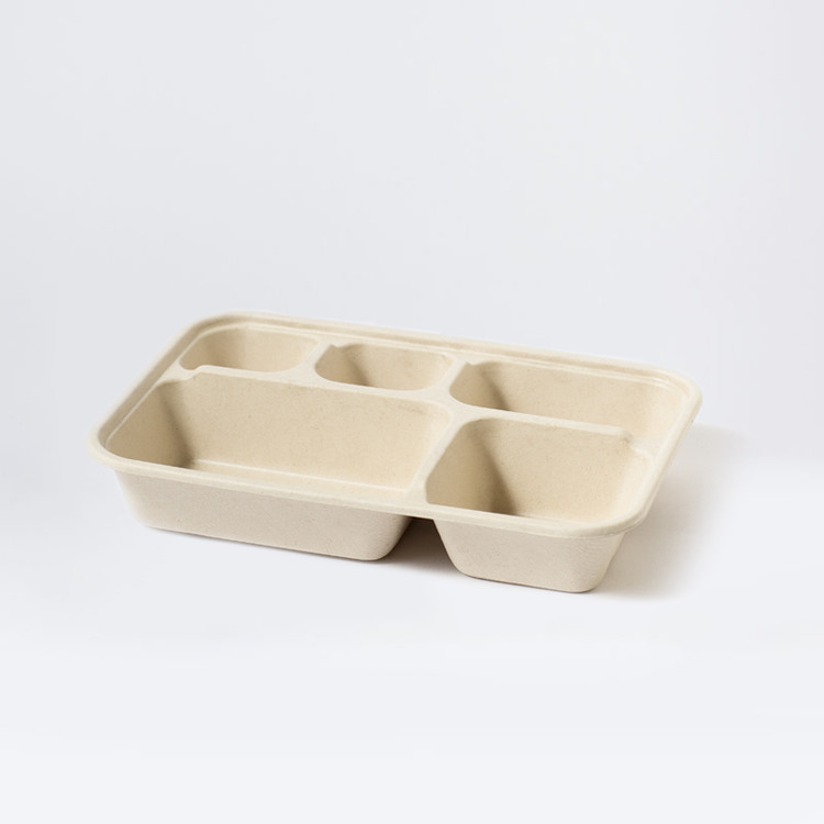 소 700ml / 밀짚 펄프 / 펄프뚜껑+용기 세트 / 일회용 5칸 도시락