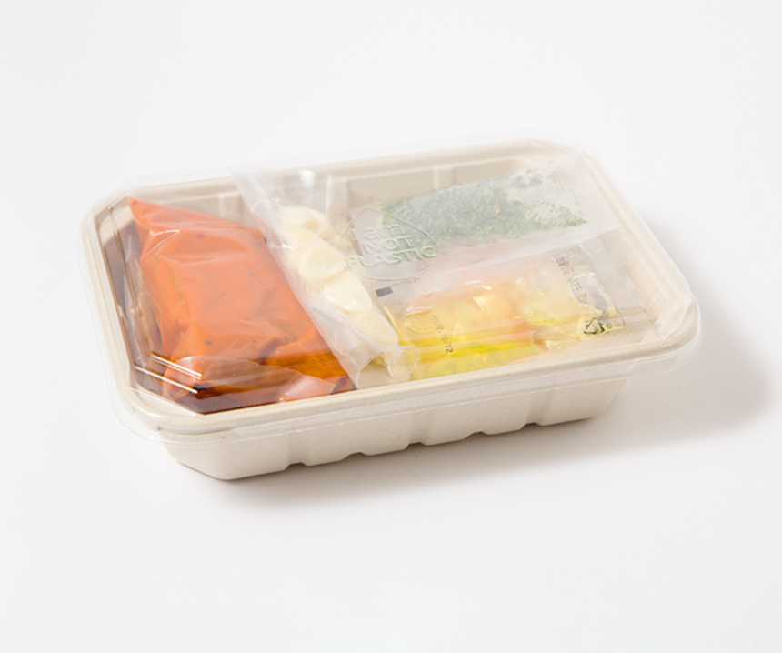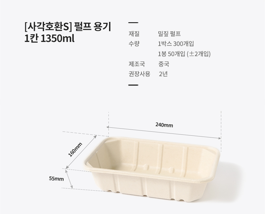 소 1350ml / 밀짚 펄프 / 펄프뚜껑+용기 세트 / 일회용 1칸 도시락