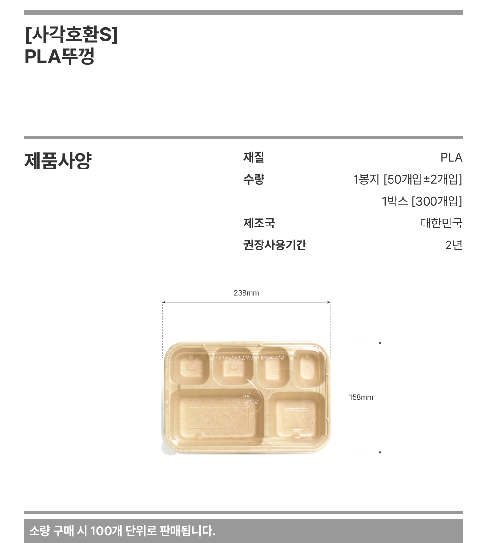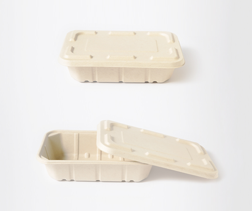 소 1350ml / 밀짚 펄프 / PLA뚜껑+용기 세트 / 일회용 1칸 도시락