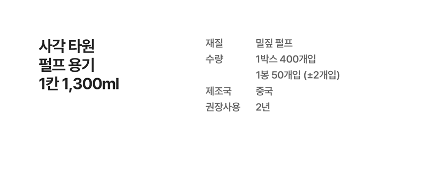 1300ml / 밀짚 펄프 / 뚜껑+용기 세트 / 일회용 1칸 도시락