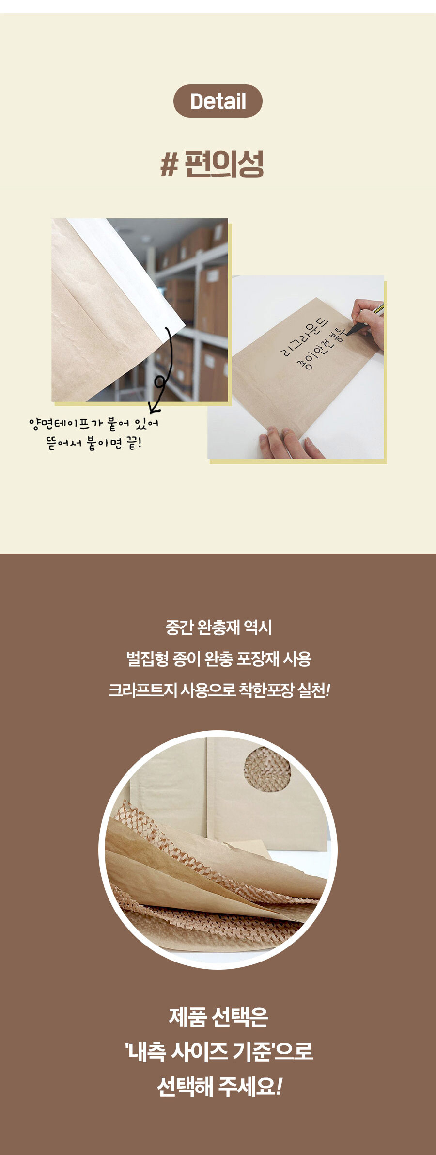 크라프트지 종이 / 중간 벌집완충지 / 3중내지 / 제로웨이스트 안전봉투 / 재활용 접착봉투 / 450*450+50mm 외측/ 430*450+50mm 내측