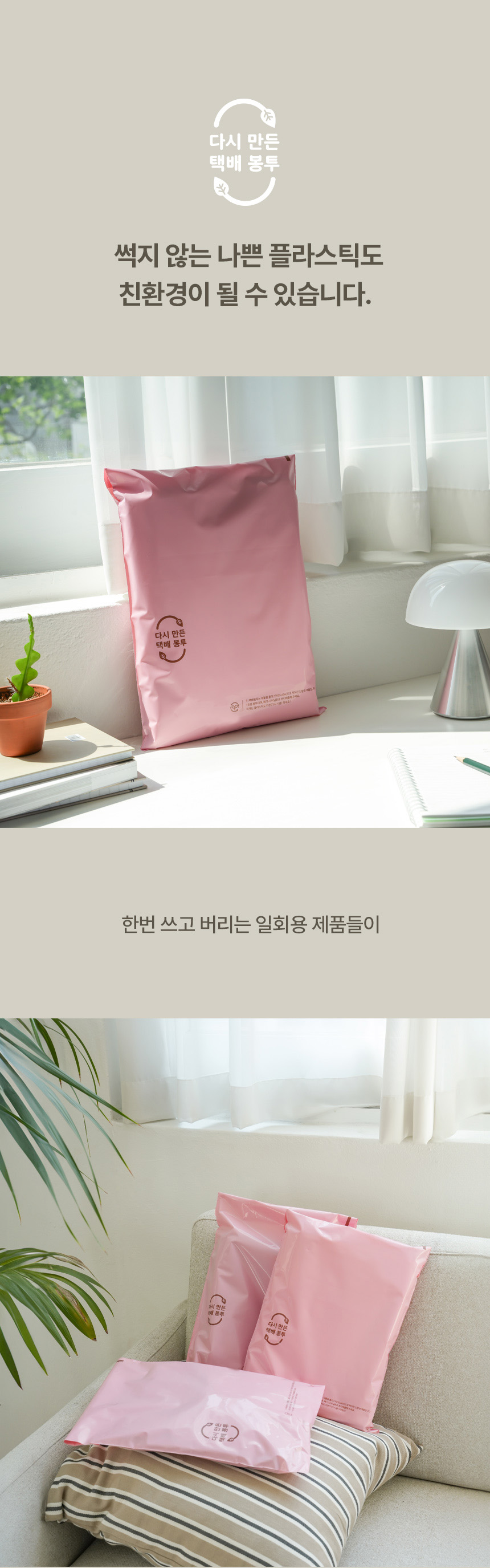 다시 만든 택배봉투 3040 핑크 30 x 40 + 4 600장 다시리본 REBORN 재활용수지 EL606 접착봉투
