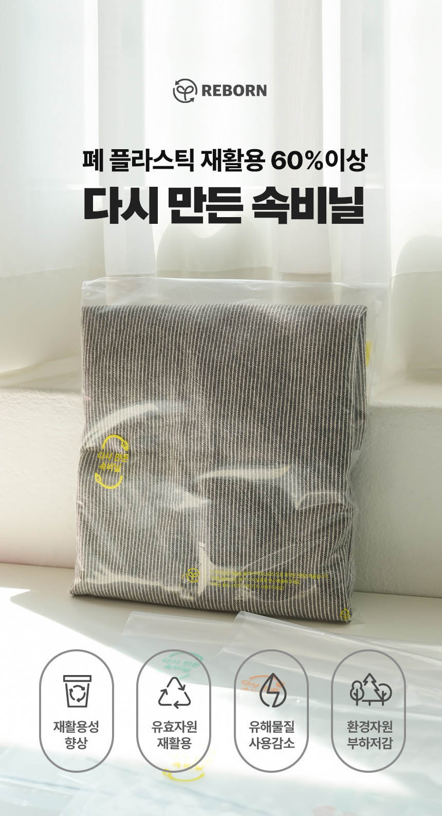 다시 만든 속비닐 2535 레몬 25 x 35 + 4 2000장 다시리본 REBORN 재활용수지 EL606 접착봉투