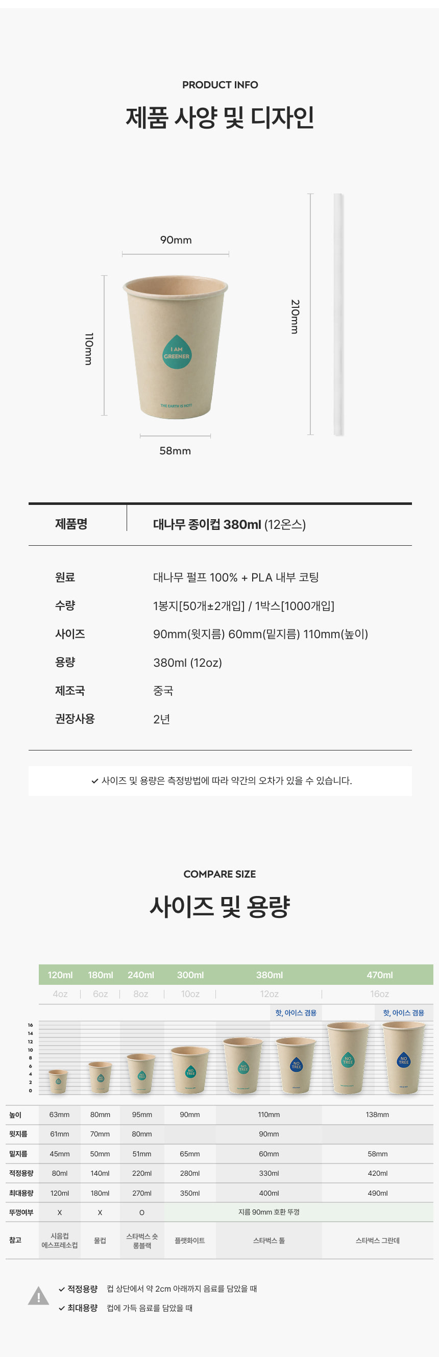 12oz / 90파이 / 대나무 종이컵 /  친환경 종이컵 / 1,000개 /PLA 핫컵리드 함께 구매가능/10,12,16 oz 뚜껑 사이즈 동일